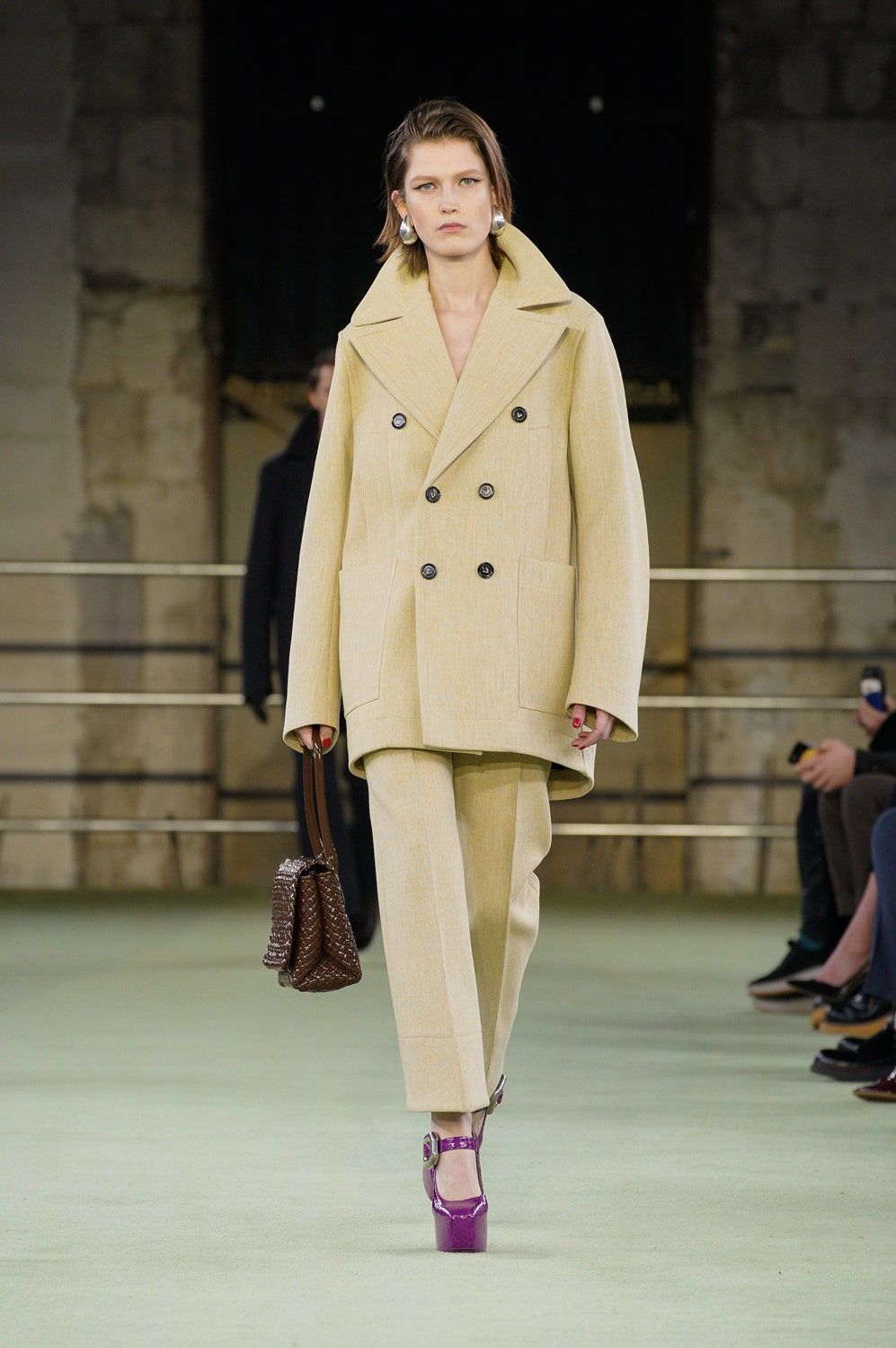 As opções apresentadas pelas grifes tem ombreiras largas e modelos transpassados, com tecidos que variam entre uma mistura de lã até seda. Algumas coleções incluem gola alta, como a Bottega Veneta, e jaquetas com lapelas de smoking de Stella McCartney.
