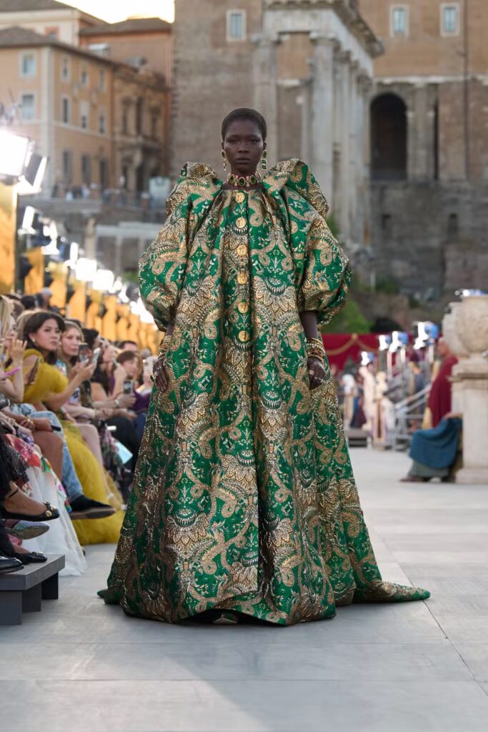 A Alta Moda em Roma não foi apenas desfile, foi performance cultural. Dolce & Gabbana elevaram a moda a rito ritualístico, integrando arquitetura, história, música e espetáculo. Um exercício de luxo performático que reafirmou por que a marca investe na Alta Moda como arte vivida.