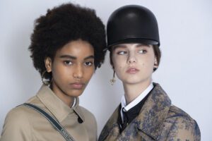 Foi o próprio Dior, por exemplo, que em 1947 criou o “new look”, um visual feminino composto por um casaqueto de cintura ultra marcada (remetendo a0 espartilho – ferramenta de aprisionamento do corpo feminino) combinado a uma saia muito rodada e armada (feita com 12 metros de tecido, imagine o peso e a limitação de movimentos e mobilidade de quem as vestia) – estávamos num mundo de pós-guerra, as mulheres usavam roupas muito mais simples e confortáveis, inspiradas na roupa masculina, já que uma infinidade delas assumiu os papéis profissionais dos homens que foram para o combate; o “new look” propõe que a mulher volte para a casa, devolva o lugar aos homens que estão voltando. Pode parecer que a roupa da Dior naquele momento impactava somente às mulheres mais afluentes, mas não se engane, essa nova silhueta foi marcante na década de cinquenta e se popularizou mesmo entre melhores de condições econômicas menos favorecidas.