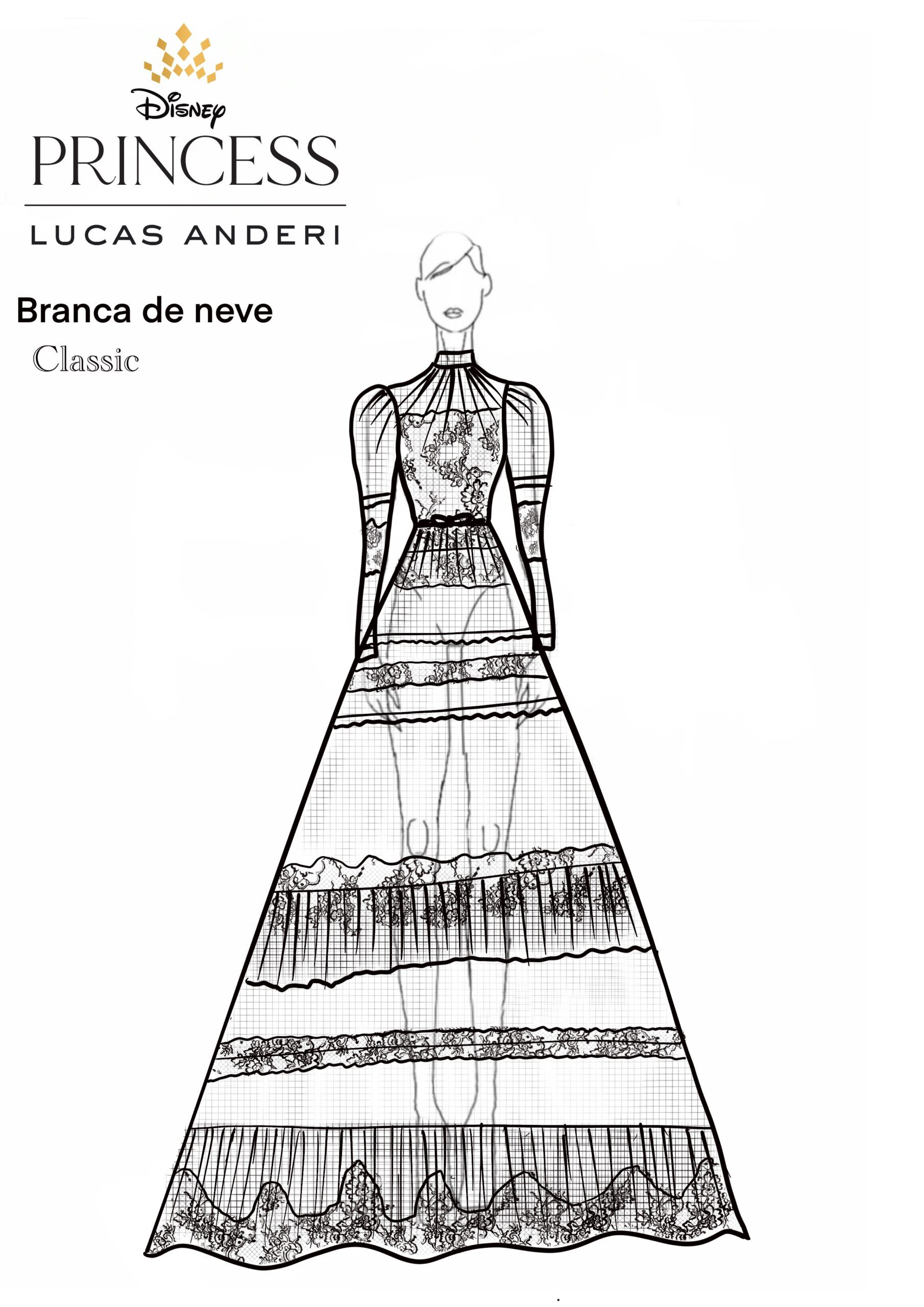 “A Disney Princess Wedding Collection by Lucas Anderi é uma coleção encantadora e mágica de vestidos, inspirados no estilo e no espírito das Princesas da Disney e suas histórias, transformando sonhos em realidade para as noivas de hoje em dia”, comenta Lucas Anderi. “Os vestidos foram desenhados e produzidos em homenagem a todas as mulheres que desejam expressar a sua individualidade e viver como protagonistas de suas próprias histórias”, completa.