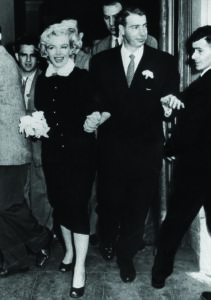 A diva escolheu um vestido marrom com gola branca para o seu segundo casamento em 1954. O modelo é um exemplo que no casamento civil vale tudo, até mesmo cores além do branco.