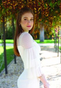 O vestido exclusivo da atriz foi produzido pela estilista Patricia Bonaldi. O modelo de jacquard de seda com tule de poás foi feito sob medida com misturas de materiais e texturas. A peça possui detalhes românticos como babados, gola alta e decote em formato de coração. Chique e fofo!
