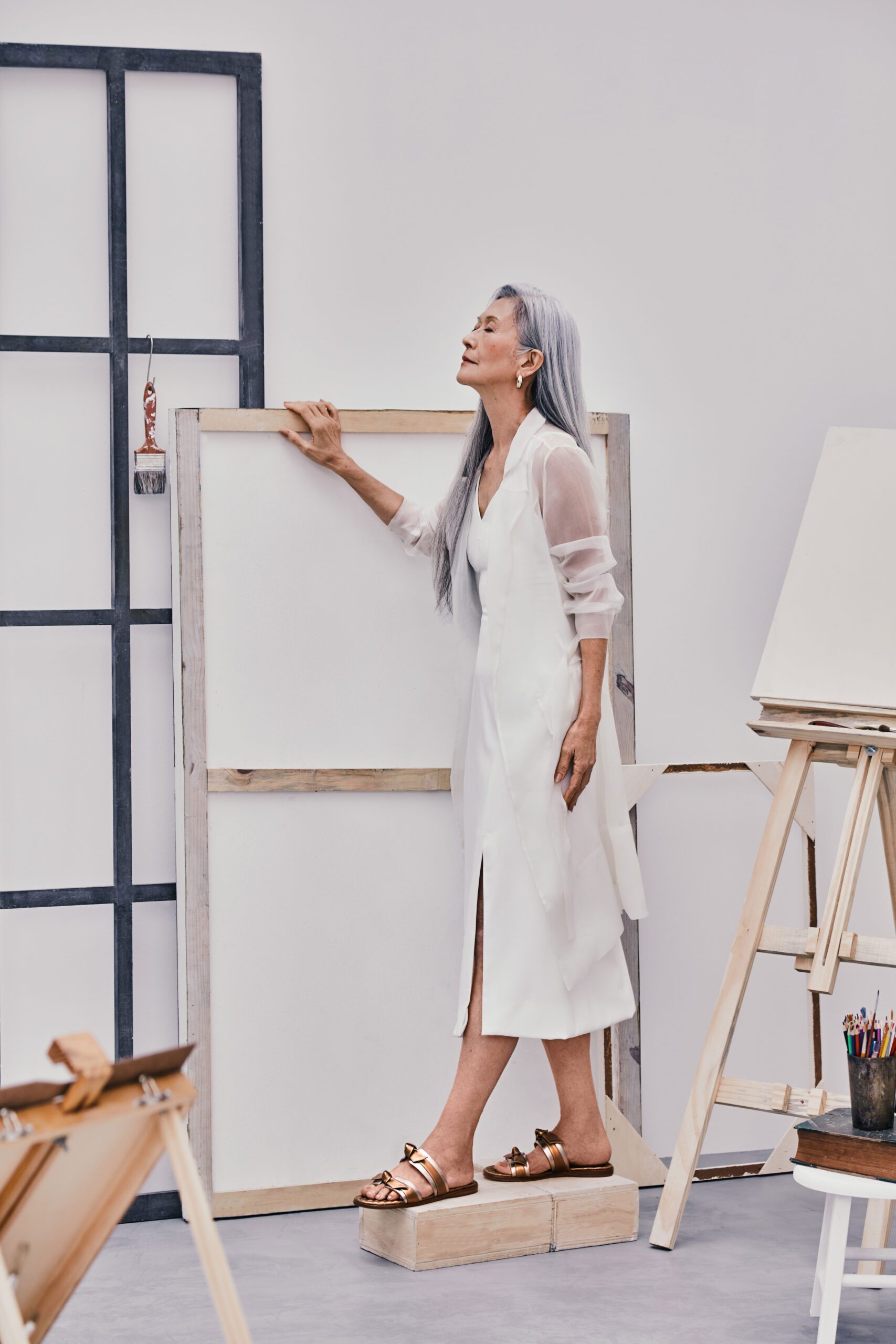 mesclam a atmosfera de um ateliê de arte com a delicadeza de Alexandre Birman. A