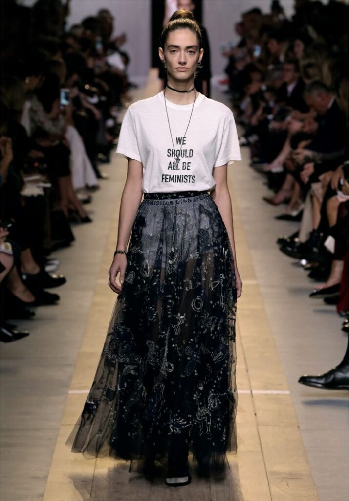 Logo em sua estreia, no desfile Primavera-Verão 2017, Chiuri deixou claro a que veio. A frase “We Should All Be Feminists”, estampada em camisetas brancas, tornou-se um marco da moda e do ativismo, inspirada no ensaio da escritora Chimamanda Ngozi Adichie. A proposta de unir a alta-costura com questões de empoderamento feminino seria uma constante em sua jornada.