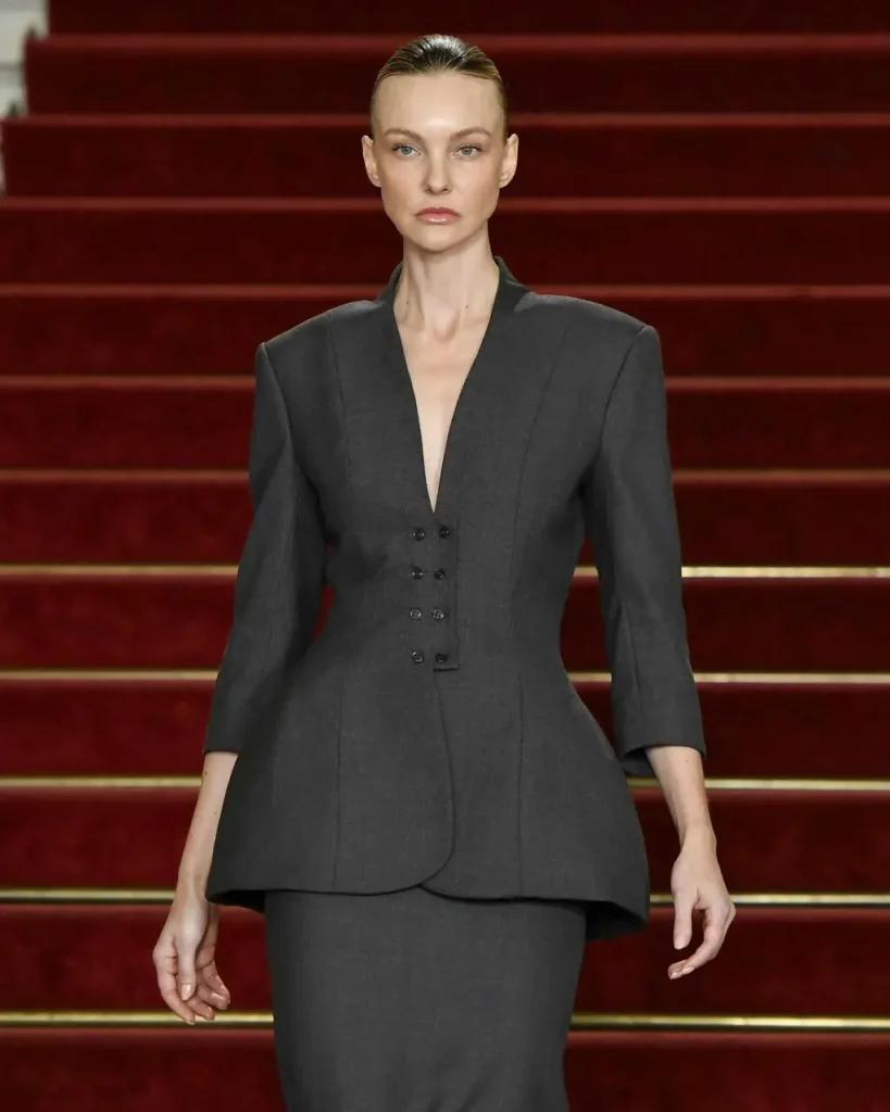 Os corações da coleção batem nos shapes inspirados nos anos 80: ombreiras estruturadas marcaram blazers, trench coats e vestidos, trazendo à tona uma sofisticação que remete a ícones como Yves Saint Laurent e Claude Montana. Mas não se trata de nostalgia: a montagem contemporânea e a leitura fresh dão vida a uma estética eclética e poderosa .