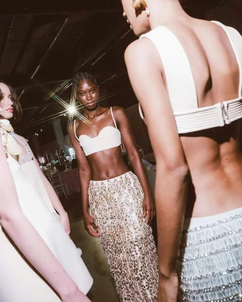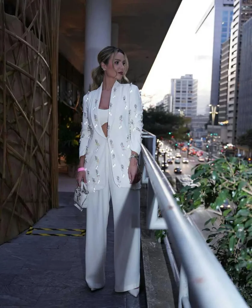 Miçangas, pedrarias e outras aplicações são perfeitas para acrescentar um brilho discreto e surpreendente. Além de valorizar o look, essas texturas trazem um movimento sutil que combina sofisticação com um toque divertido. Tops, saias e vestidos bordados não só enriquecem o visual, mas também adicionam dinamismo ao caminhar, garantindo elegância e modernidade em qualquer ocasião.