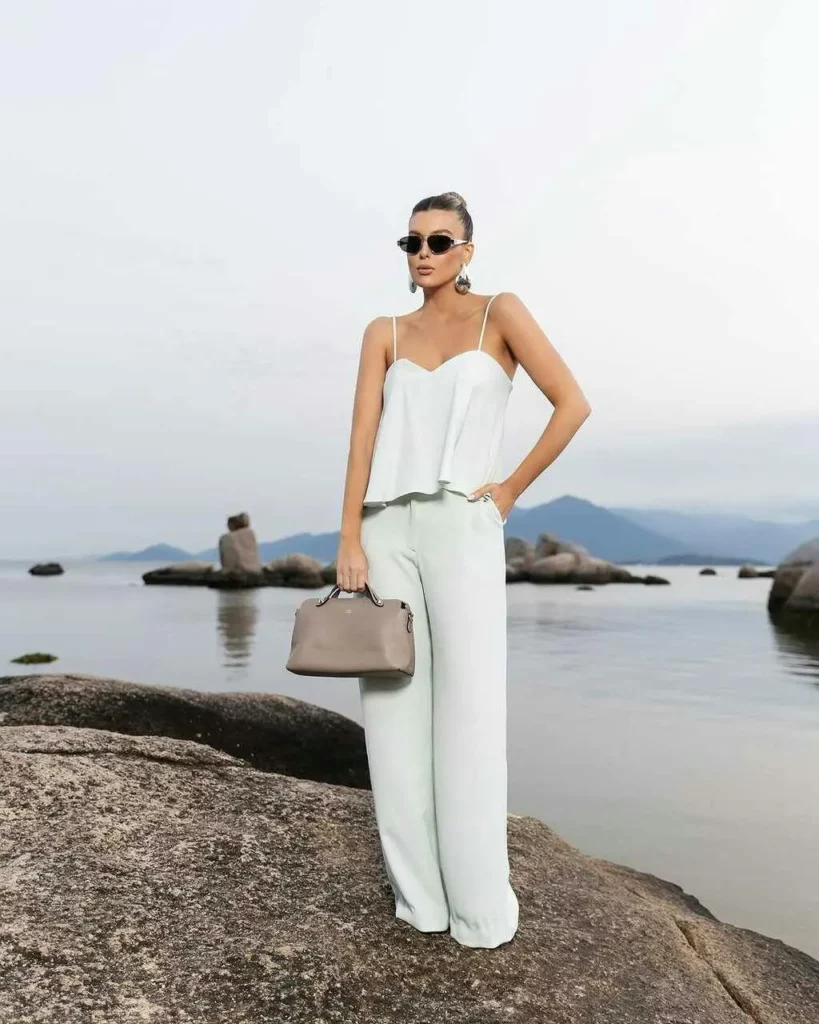Nos dias mais quentes, tecidos leves como seda e chiffon são ideais para criar looks com movimento. Vestidos e saias esvoaçantes geram um efeito etéreo ao vento, intensificando a sensação de liberdade e frescor. Combine essas peças com acessórios minimalistas para manter o equilíbrio na composição, garantindo sofisticação sem esforço. Esse estilo é perfeito para passeios ao ar livre ou jantares descontraídos.
