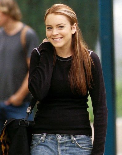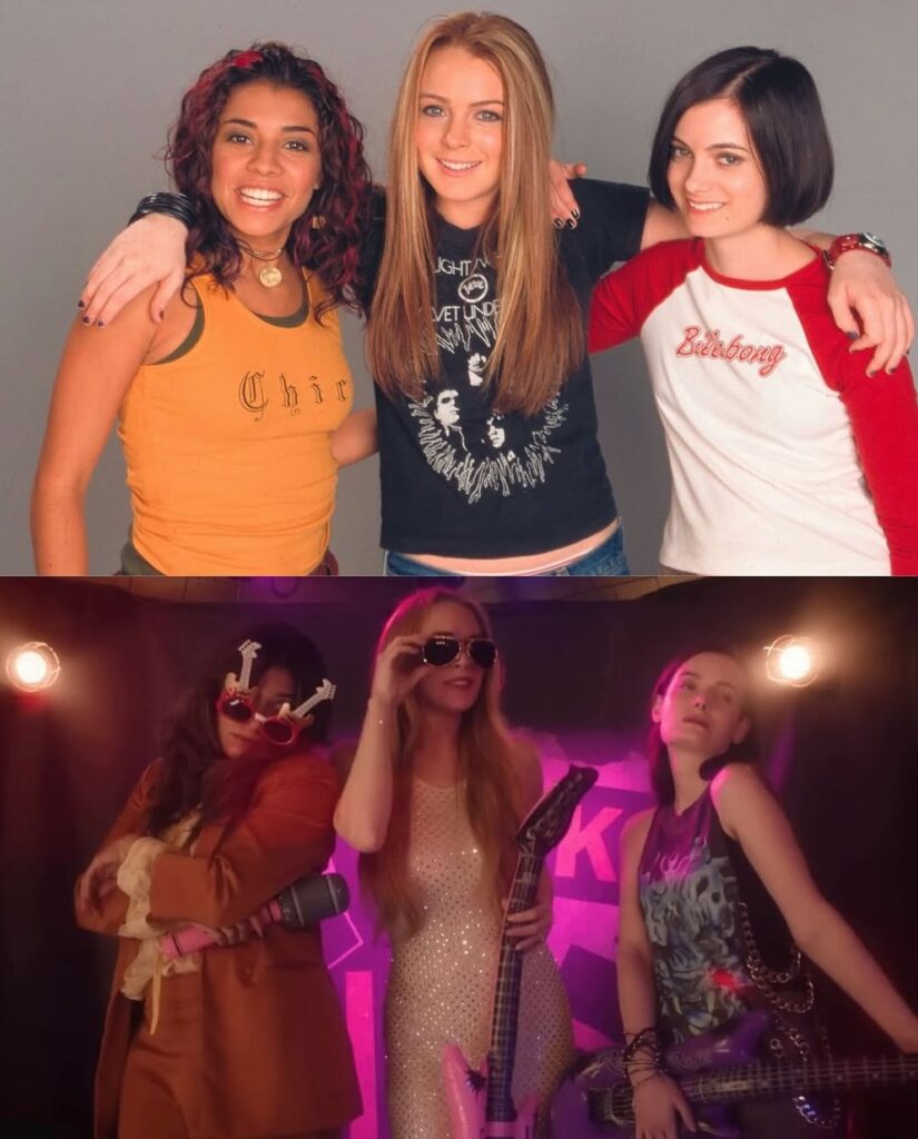No início do filme, Anna (Lohan) personifica a estética do mall punk com camiseta de banda, calça baggy de cintura baixa, gargantilhas, tachas e sobreposições de mangas. A maquiagem dramática com lápis preto reforça sua rebeldia e atitude adolescente, inspirada em idols do rock e da cultura alternativa da época.