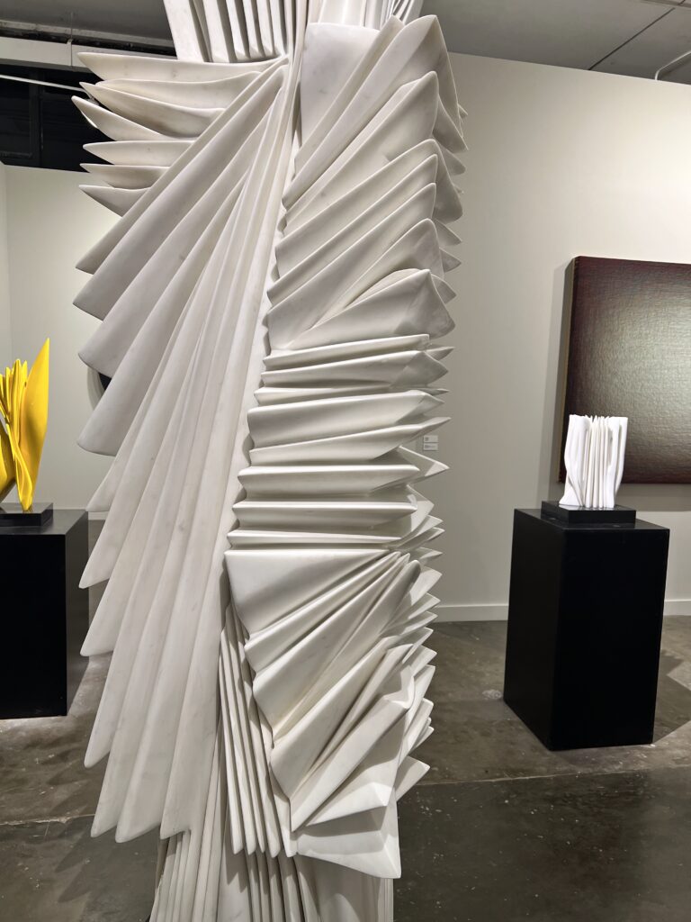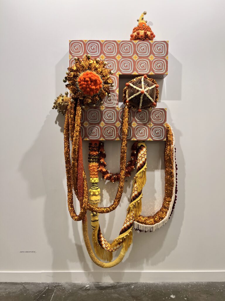 Diante disso, após 3 dias de imersão na SP-Arte, separei 5 obras, que chamaram minha atenção, para traçar um paralelo com a moda, com o objetivo de exemplificar a união e a interação entre essas três áreas. É possível fazer essa análise, de diferentes maneiras: explorar os conceitos, as referências, as funcionalidades, as estampas, as cores, as proporções, as formas, as volumetrias, as texturas, os materiais… entretanto decidi explorar essas obras, utilizando os desfiles da última temporada de moda de Outono/Inverno 2025.