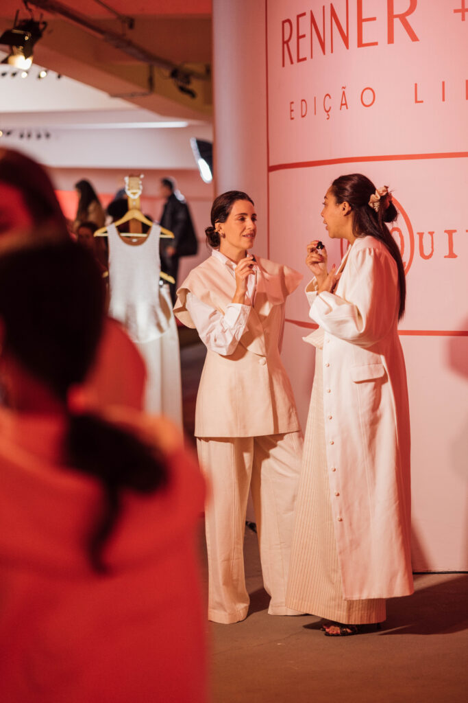 Quem recebeu os convidados e apresentou a coleção foi a fundadora e diretoria criativa da ALUF, Ana Luisa Fernandes, ao lado da CMO da Lojas Renner, Renata Altenfelder, e da gerente sênior de Pesquisa e Inovação em Produto da varejista, Julia Lóra.