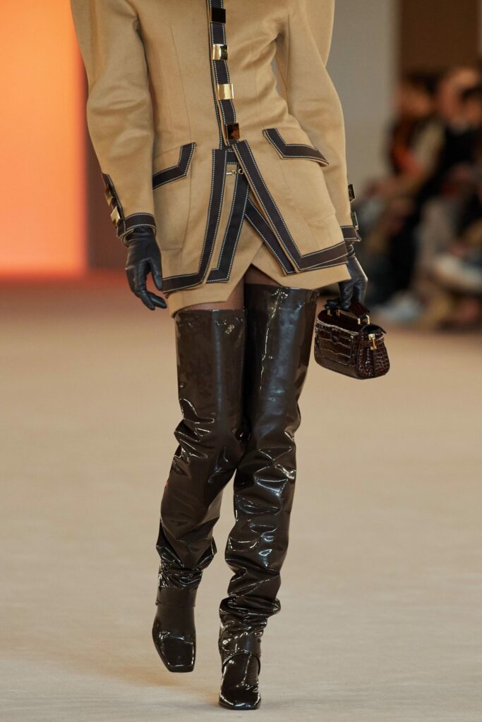 E quem confirma seu sucesso é ninguém menos do que Saint Laurent, Isabel Marant e Balmain, que desfilaram essas botas em couro e, também, látex. Conhecida em francês como cuissarde, elas carregam um ar sexy e, ao mesmo tempo, evocam os anos 80 com maximalismo e toques vintages.