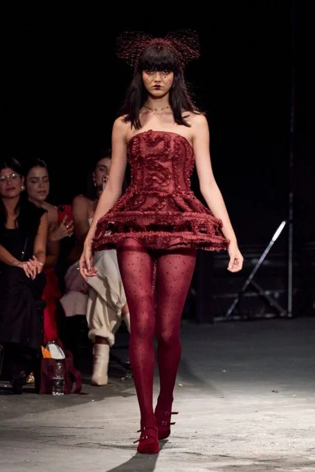 Um dos momentos mais emblemáticos da edição foi o retorno de Alexandre Herchcovitch às passarelas com sua marca autoral “Herchcovitch; Alexandre”. Em um desfile marcado pela maturidade criativa, o estilista apresentou uma coleção que revisitava seus códigos clássicos — como as modelagens esculturais e o preto dramático — em um novo contexto, mais contido, porém igualmente impactante. Peças com estruturas rígidas, golas altas, recortes estratégicos e alfaiataria refinada demonstraram que o estilista mantém a mesma energia provocadora que o consagrou, agora com uma dose a mais de sofisticação silenciosa.