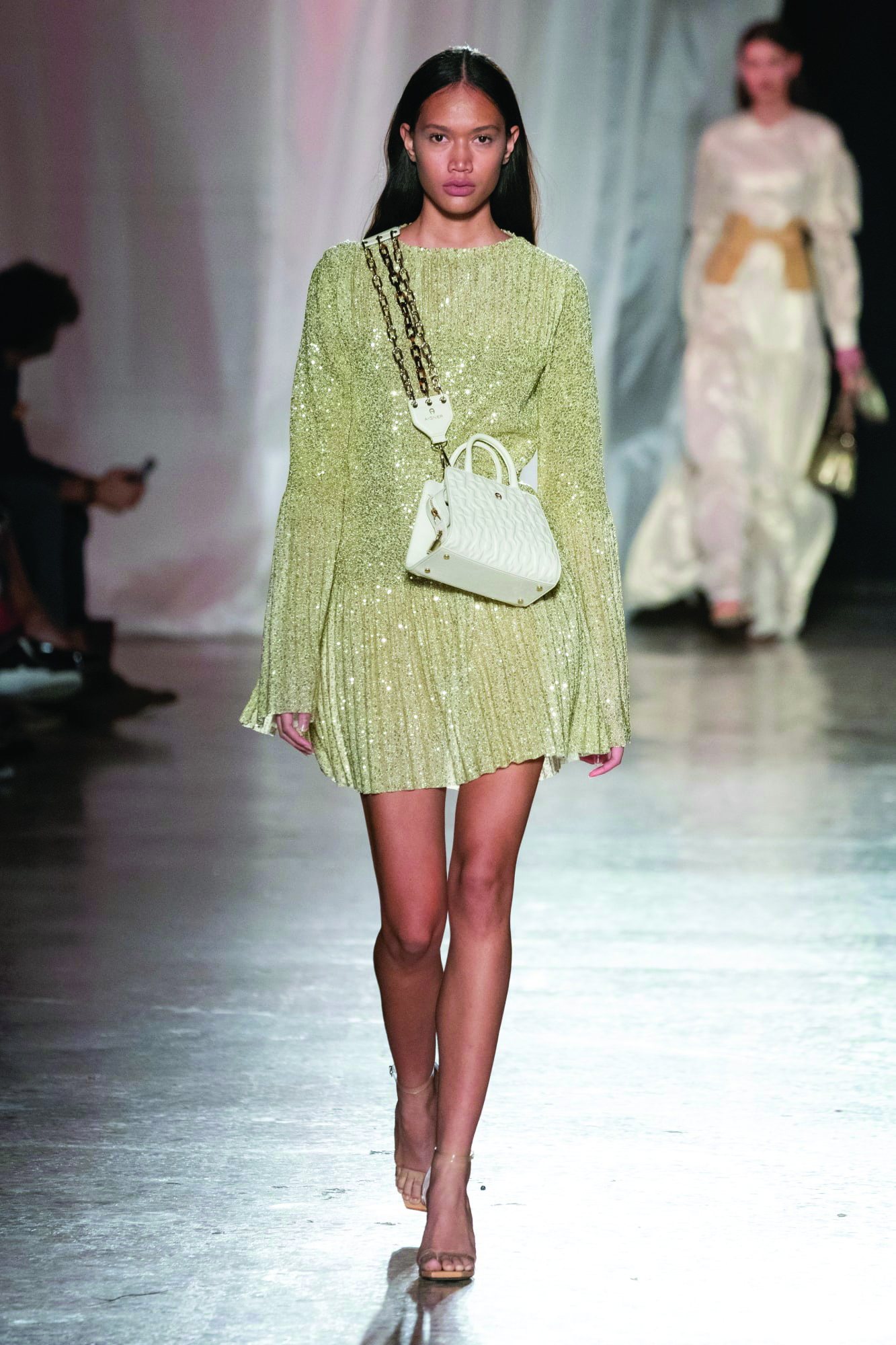 A vibe discoteca invadiu as passarelas de Milão, com detalhes iridescentes e chamativos dos pés à cabeça. Seja nos tecidos brilhantes, ou nas aplicações de pedras e paetês, o brilho deu as caras de forma autêntica e pronto para a festa!