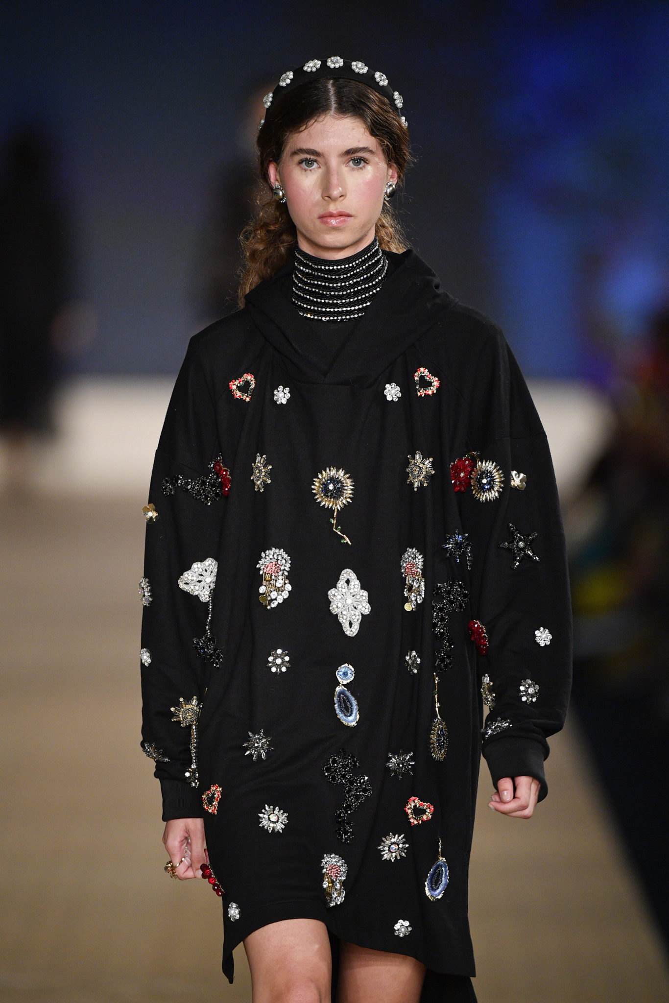 À la Dolce&Gabbana, a marca trouxe bordados, pedrarias, aplicações e cintura marcada com cintos largos. Os acessórios também eram adornados, como os óculos, bolsas e tiaras.