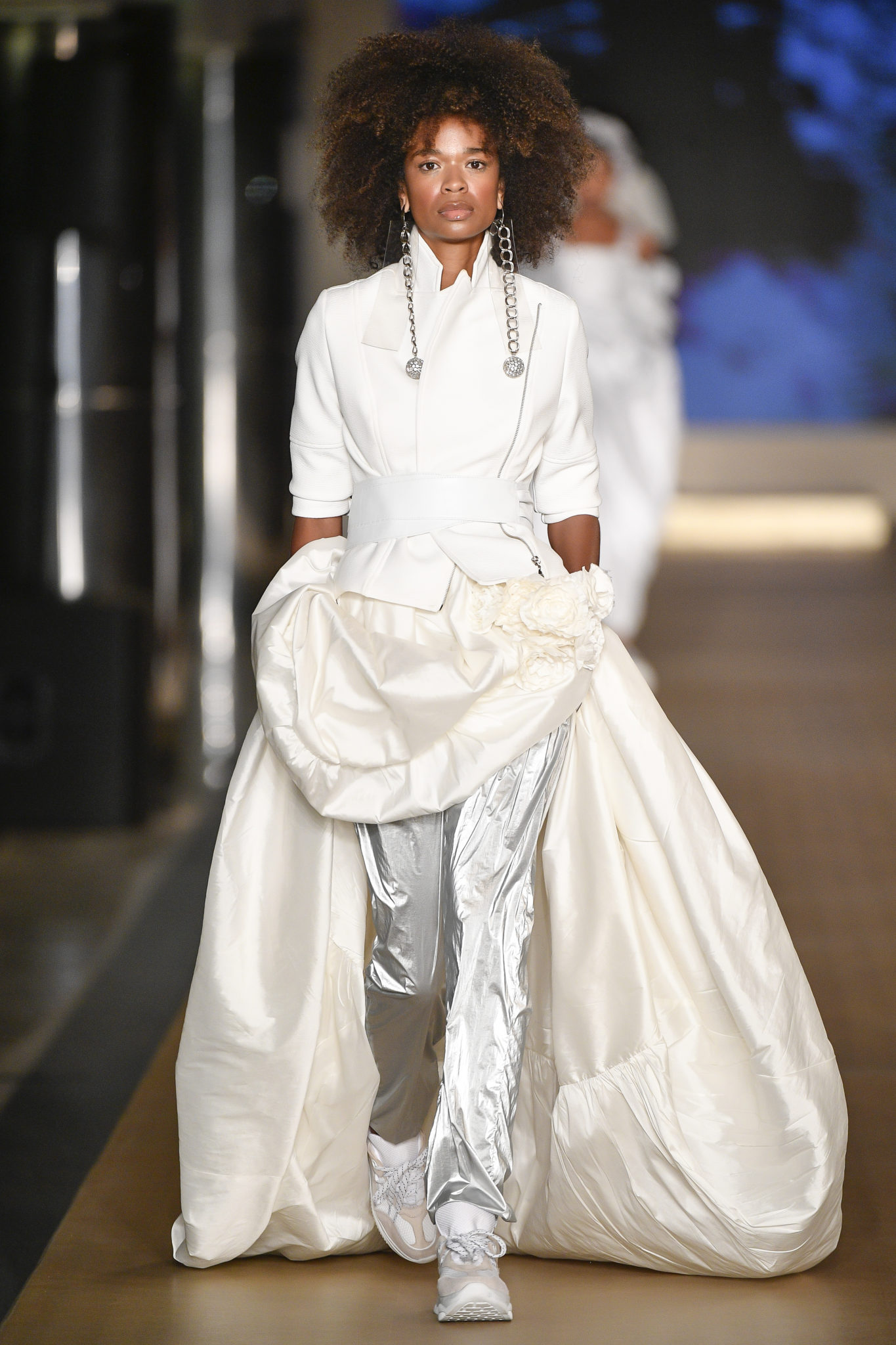 A rainha das noivas propôs uma moda festa despojada e cool, com vestidos longos de tule acompanhados de jaquetas jeans. A sofisticação chega com as mangas bufantes e transparência.