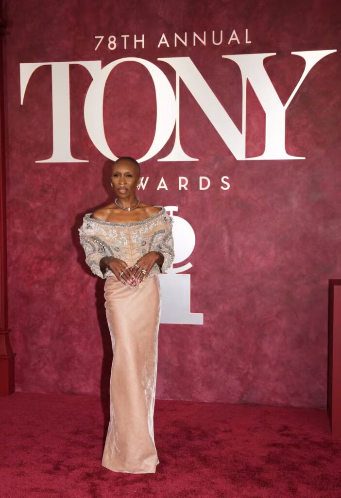 A anfitriã da noite, Cynthia Erivo, marcou presença com um conjunto rosa vibrante da maison Schiaparelli, assinado por Daniel Roseberry, que chamou a atenção pelo bordado em pérolas e o uso luxuoso de veludo. O vestido, complementado por joias delicadas da FOPE e unhas em tom cherry-red feitas por Mycah Dior, foi um equilíbrio perfeito entre o glamour clássico e a modernidade teatral. Cynthia irradiou poder e charme, mostrando que a moda no teatro pode ser ao mesmo tempo sofisticada e ousada.