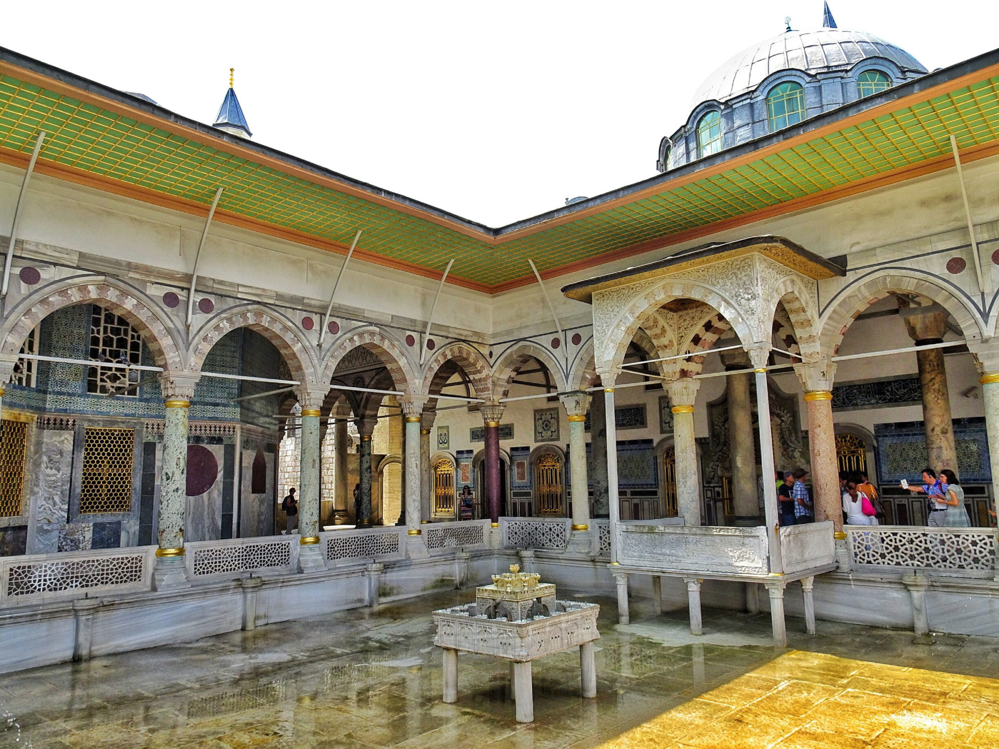 Além disso, lá ficam várias relíquias do mundo Cristão como um pedaço do crânio de São João Batista e o cajado de Moisés. No quarto pátio do Palácio Topkapi, existe um terraço com uma paisagem muito linda para o Bósforo e para o lado asiático de Istambul. Não se esqueçam de tirar uma foto com essa vista única! Nesse terraço está localizado um renomado restaurante com a típica comida turca, chamado Konyali, caso você coincida estar no Palácio na hora do almoço!